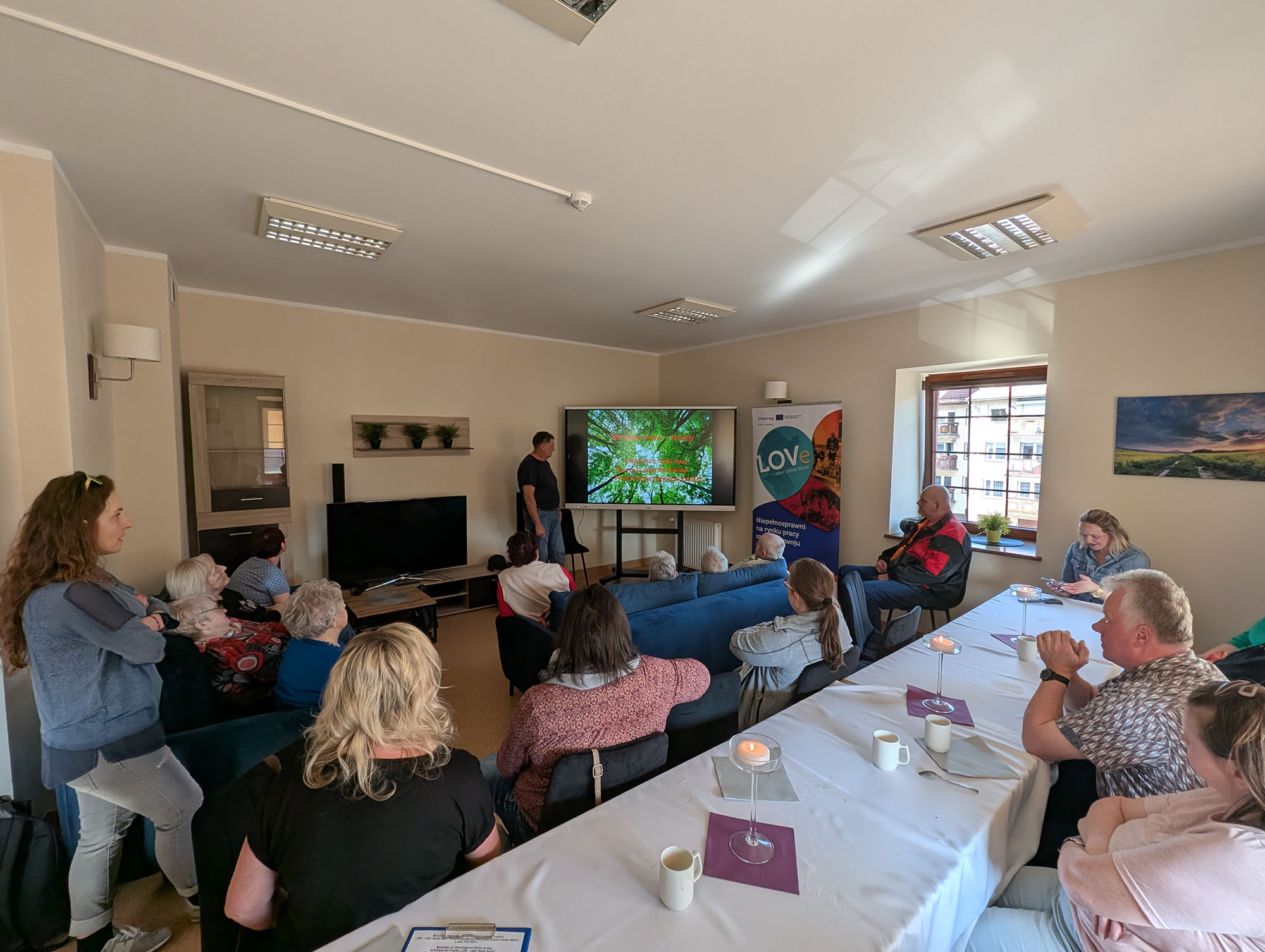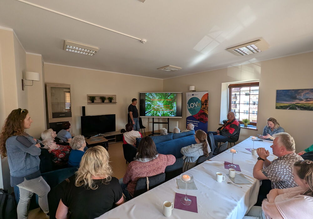Nach der herzlichen Begrüßung wurden wir zunächst mit einem traditionellen polnischen Osterfrühstück empfangen. Auf dem Tisch standen unter anderem Pastete, Backkartoffeln mit Hering und ein Gemüse-Kartoffelsalat. Anschließend hielt ein Werkstattmitarbeiter, der früher als Forstarbeiter tätig war, einen interessanten Vortrag über den Aufbau des Waldes. Dabei erklärte er die verschiedenen Schichten wie Baum-, Strauch- und Krautschicht sowie die wichtige Rolle des Waldbodens, in dem viele kleine Lebewesen für die Zersetzung von Pflanzenresten und neue Nährstoffe sorgen.