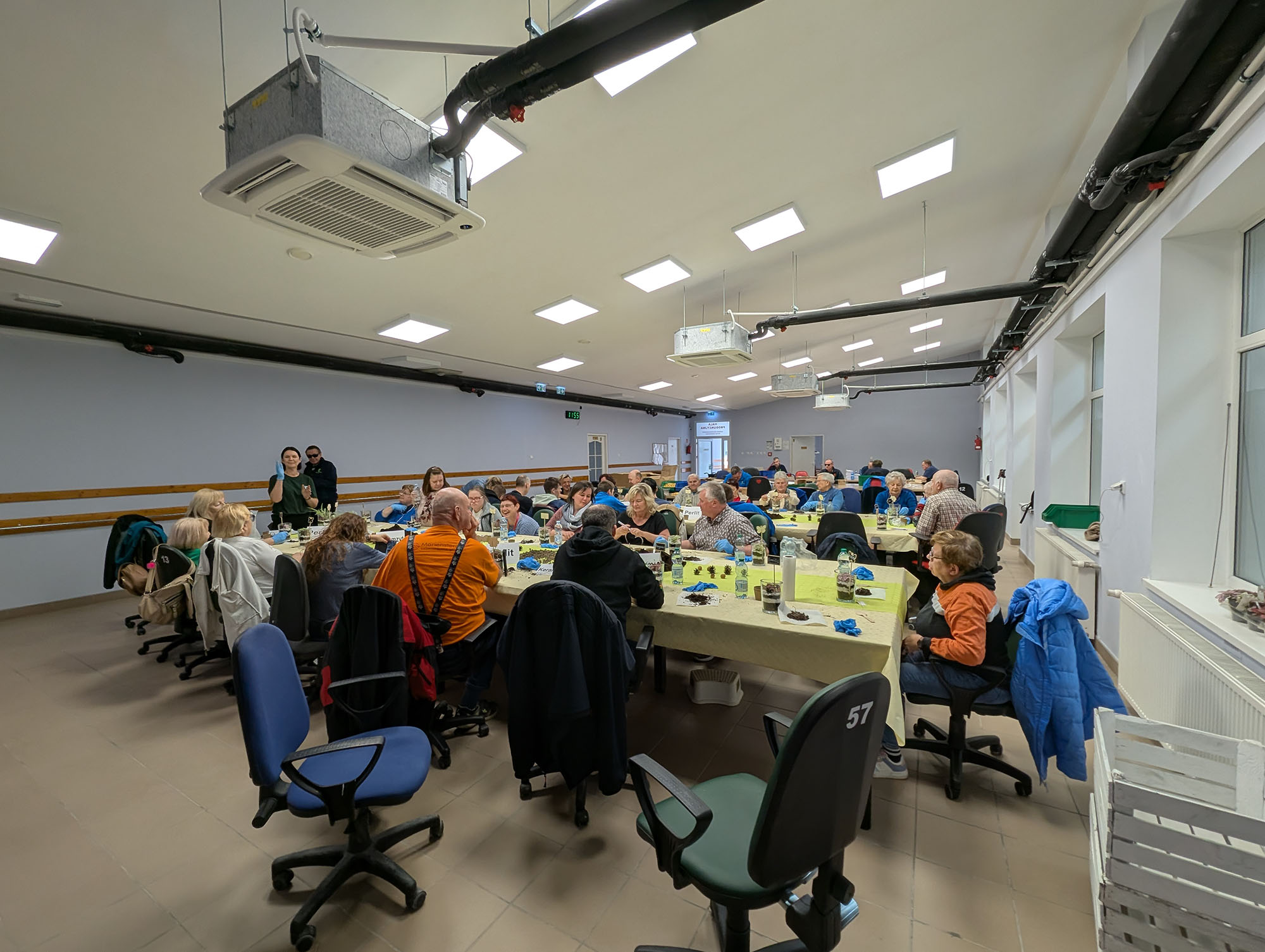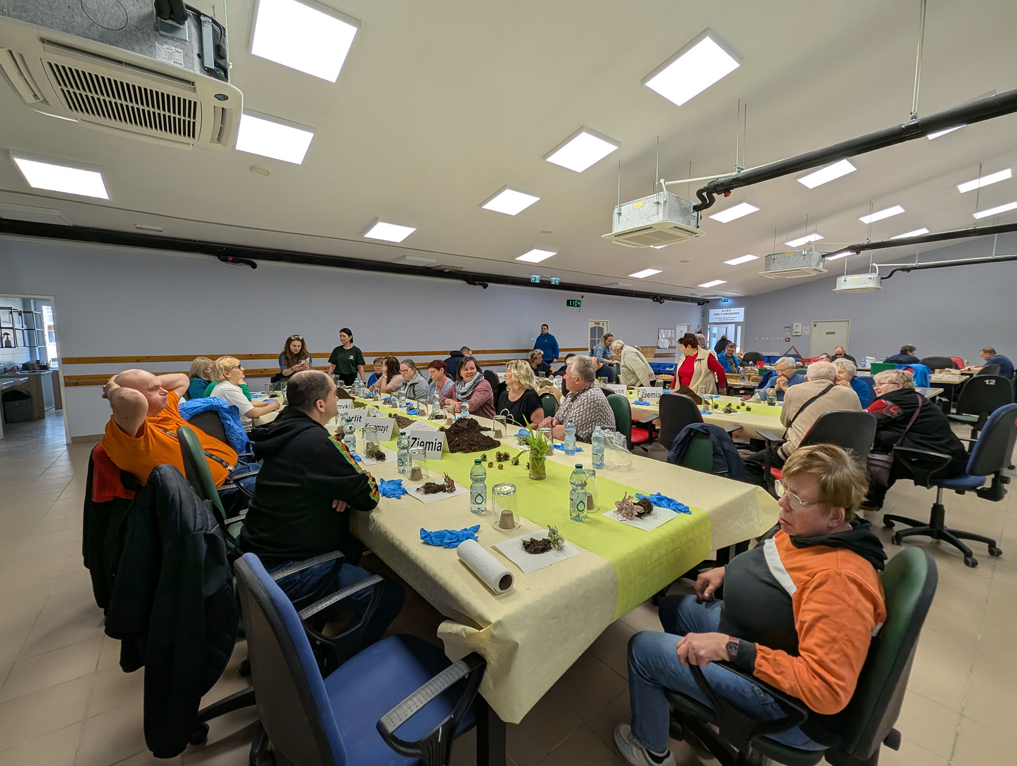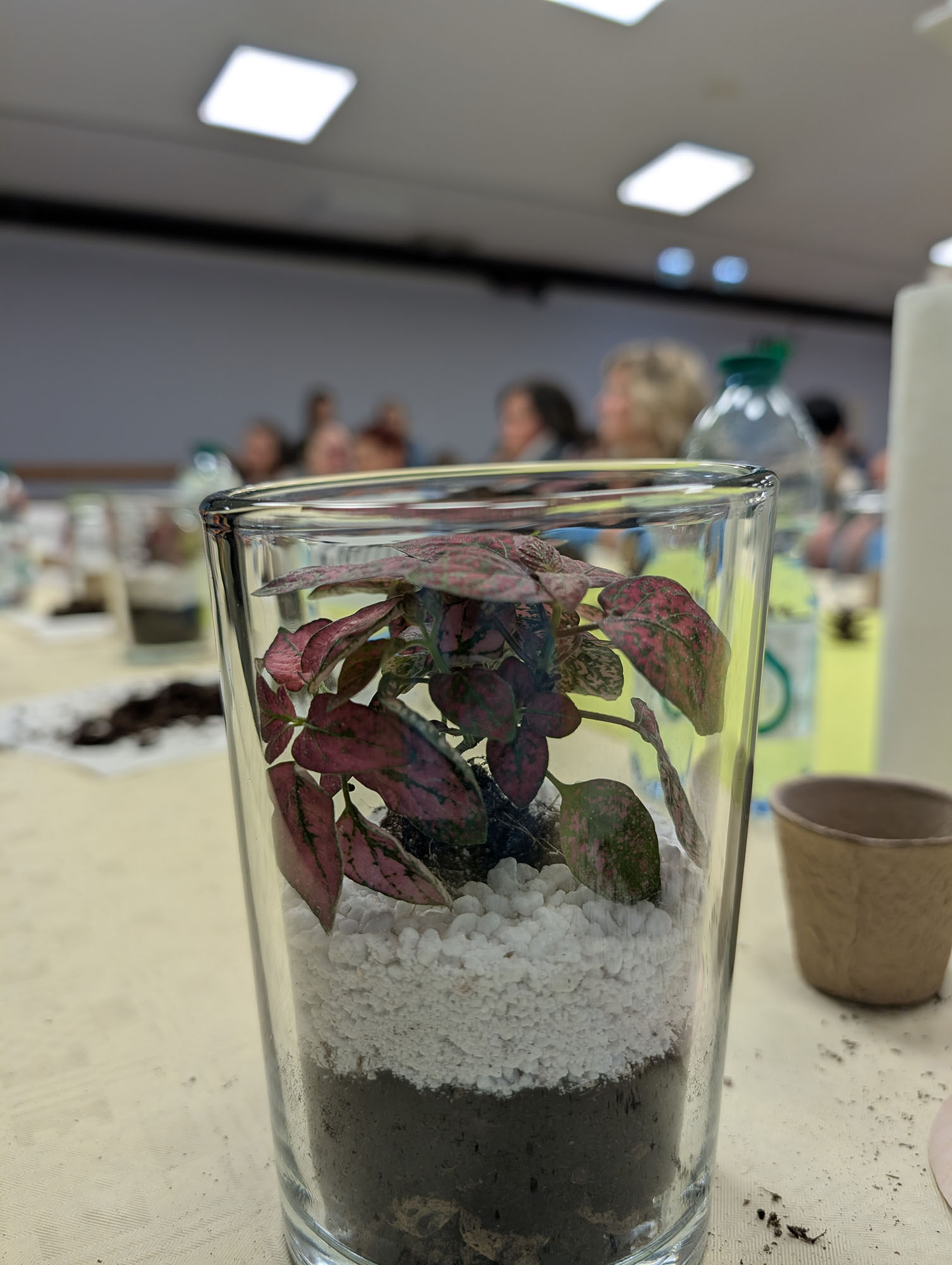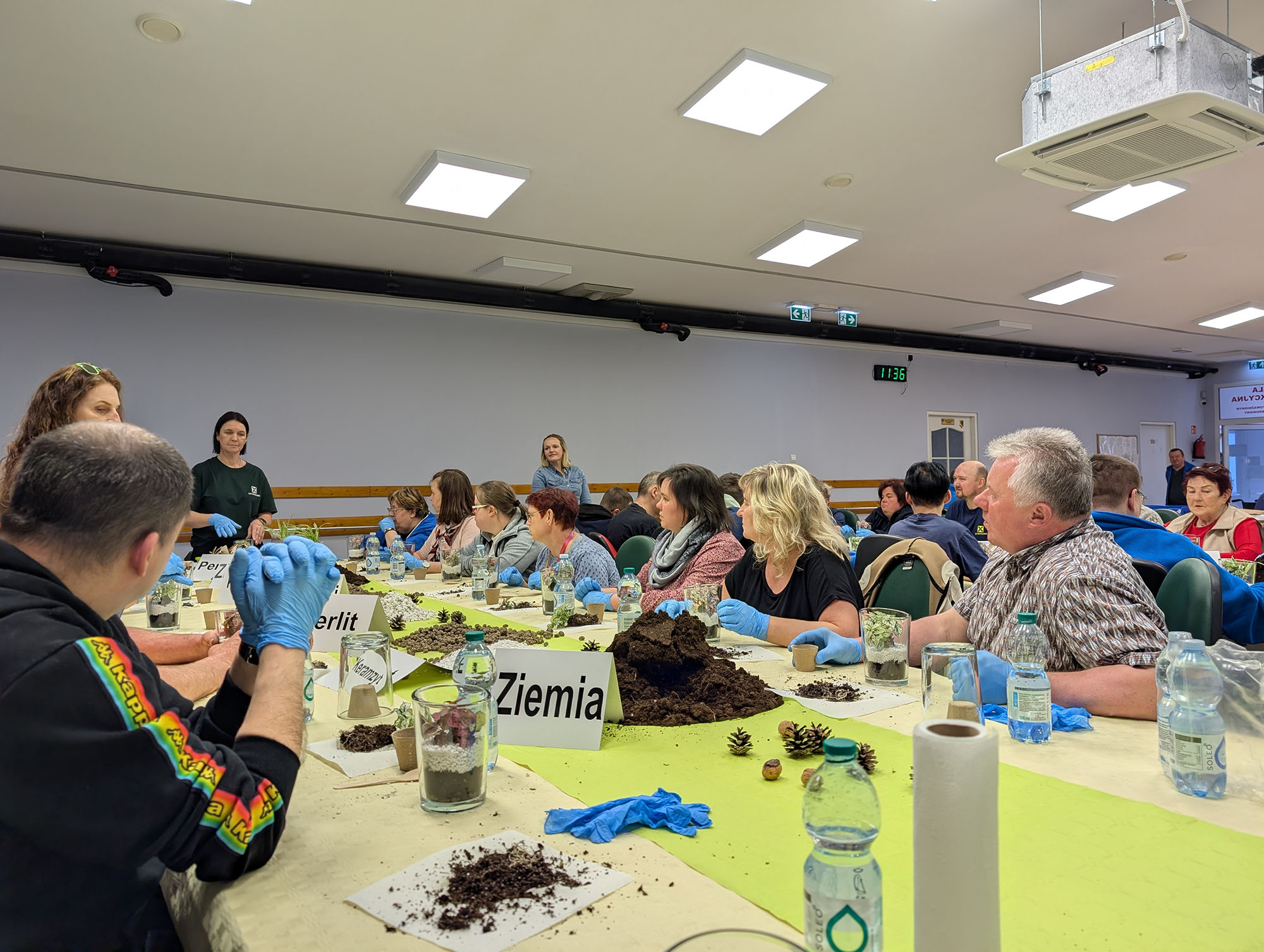 Danach ging es in eine Montagehalle der Werkstatt, in der bereits alles für unseren Workshop vorbereitet war. Jeder Teilnehmer bekam ein Glas, eine Pflanze und die nötigen Materialien. Schritt für Schritt wurde erklärt, wie ein Flaschengarten aufgebaut ist – von der Drainage über Erde bis hin zur Pflanze. Mit viel Freude gestalteten alle ihren eigenen kleinen Garten im Glas. Am Ende hatte jeder Teilnehmer einen schönen Flaschengarten geschaffen, den er als Erinnerung mit nach Hause nehmen durfte.